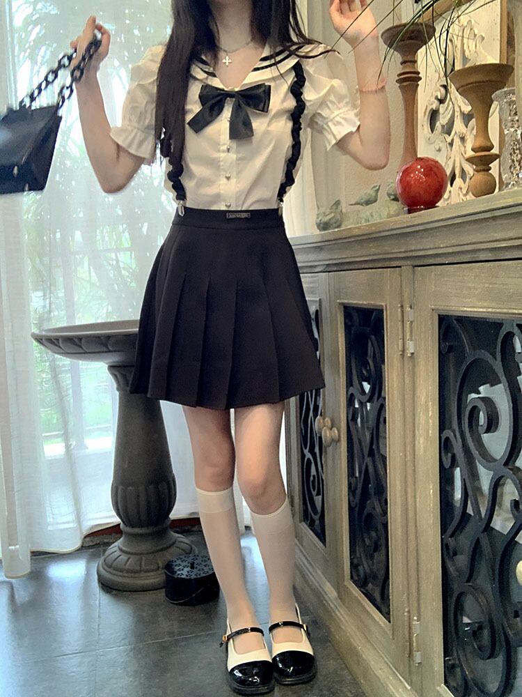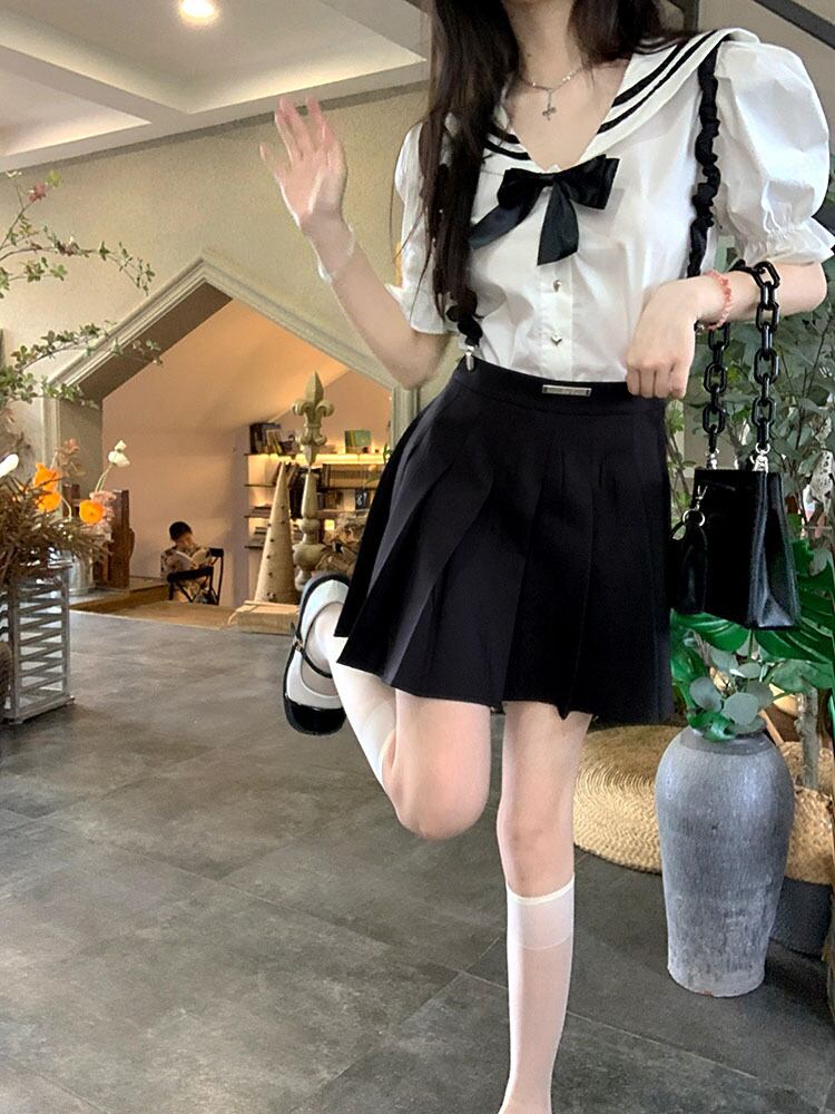 スタイルサマーネイビーカラーシャツ プリーツスカート セット 夏物 10/5 秋冬 オータム ウインター ナチュラル mi4660643077552
