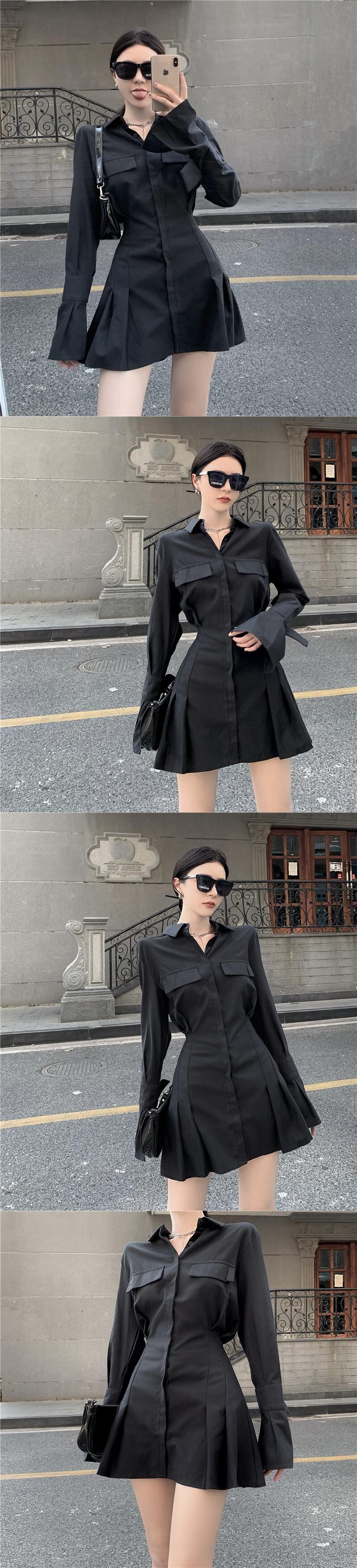 ブラックシャツ ドレス オータムウェストAラインスカート 秋物 10/5 秋冬 オータム ウインター ナチュラル mi4662204936911