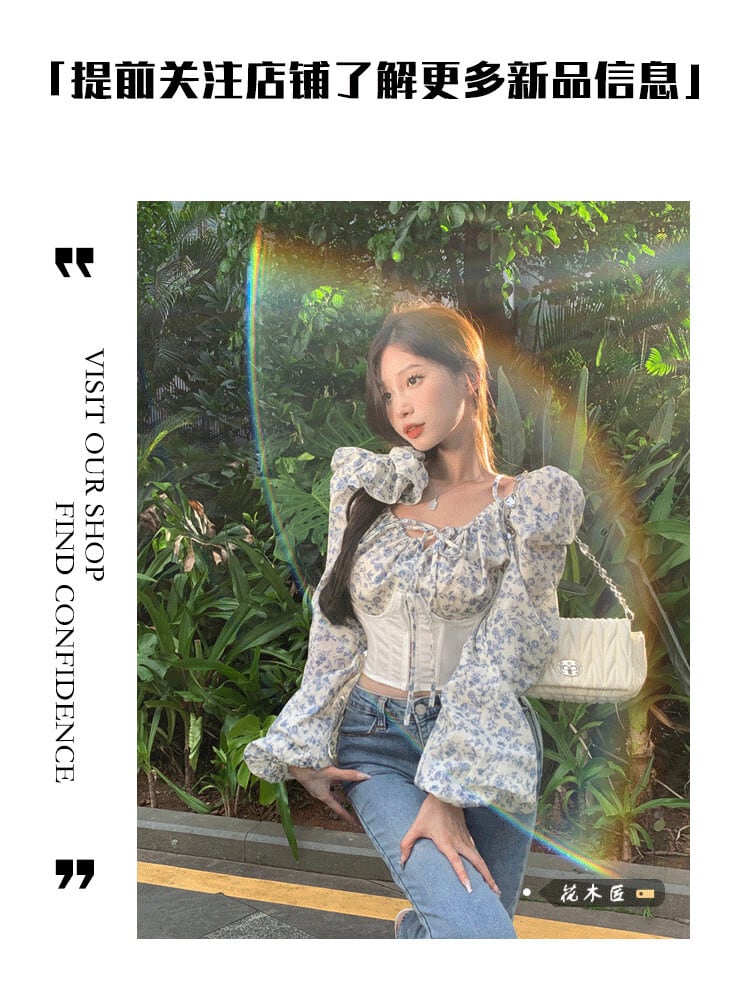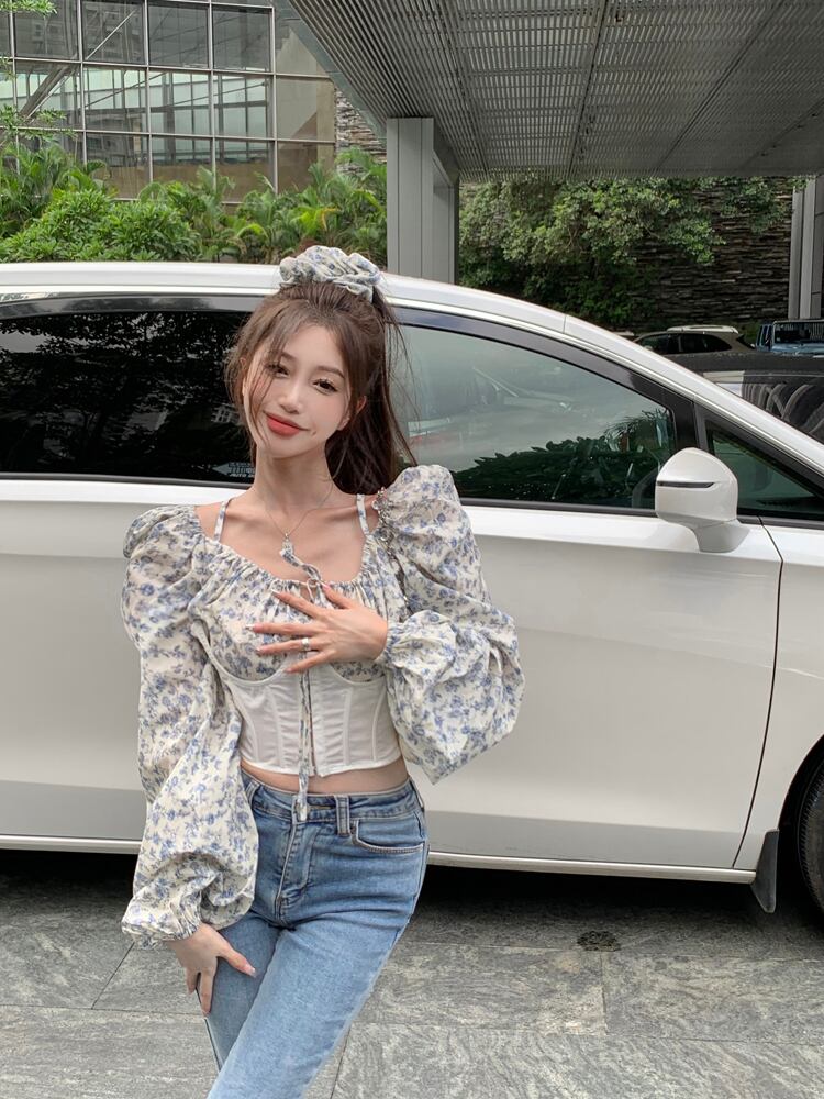フローラルシャツ オータムショートスタイルスリムトップス ロング 大人ガーリー スウィート キュート カジュアル 秋物 花柄 10/5 秋冬 オータム ウインター ナチュラル mi4647362569244
