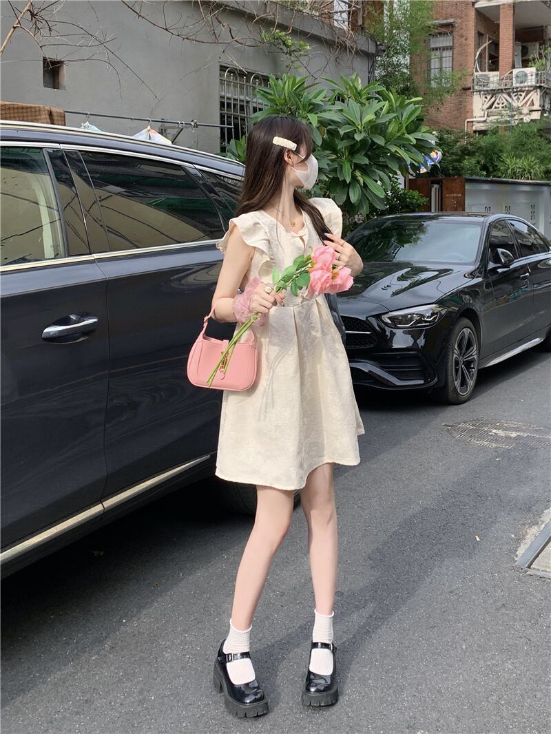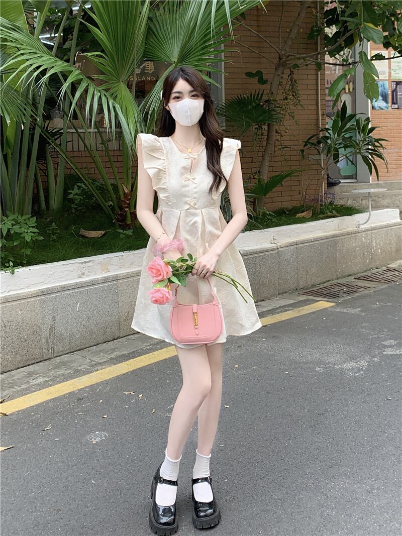 スリーブドレス サマーリボンウェストAラインスカート 大人ガーリー スウィート キュート カジュアル 夏物 10/5 秋冬 オータム ウインター ナチュラル mi4637228503077