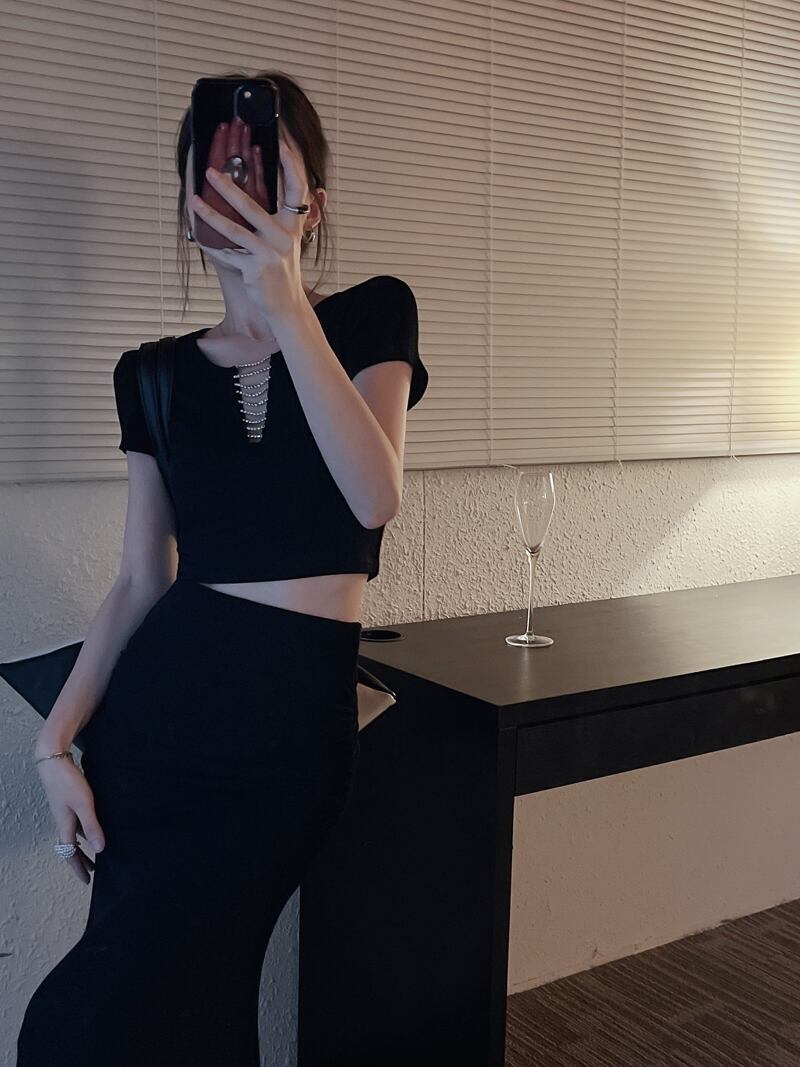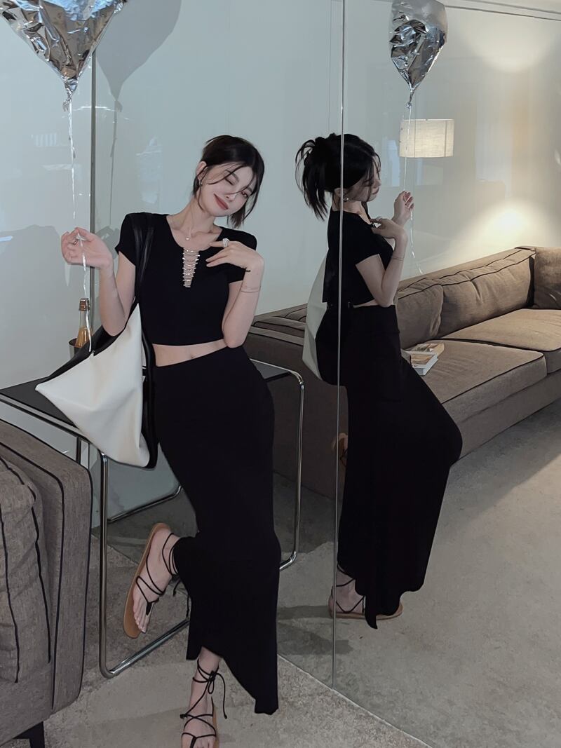 ソリッド カラーサマーチェーン トップス スカート セット 夏物 ソリッドカラー 10/5 秋冬 オータム ウインター ナチュラル mi4651585590998