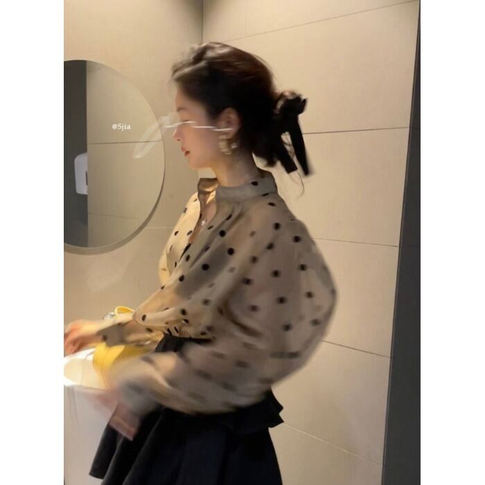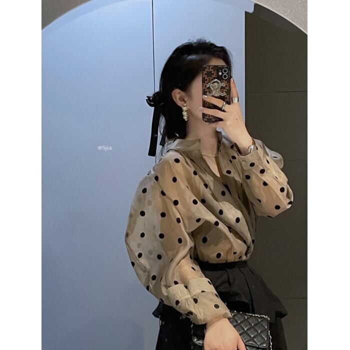 水玉シフォンシャツ オータムルーズトップス ロング 秋物 10/5 秋冬 オータム ウインター ナチュラル mi4616825825797