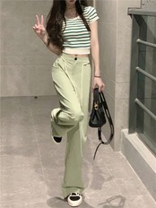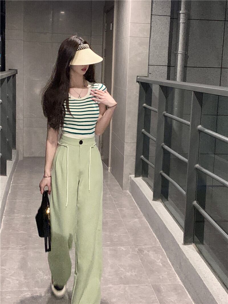 カラーストライプニットショートTシャツ サマースタイルスリムトップス 夏物 10/5 秋冬 オータム ウインター ナチュラル mi4647093302585