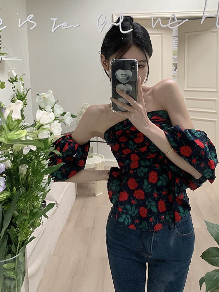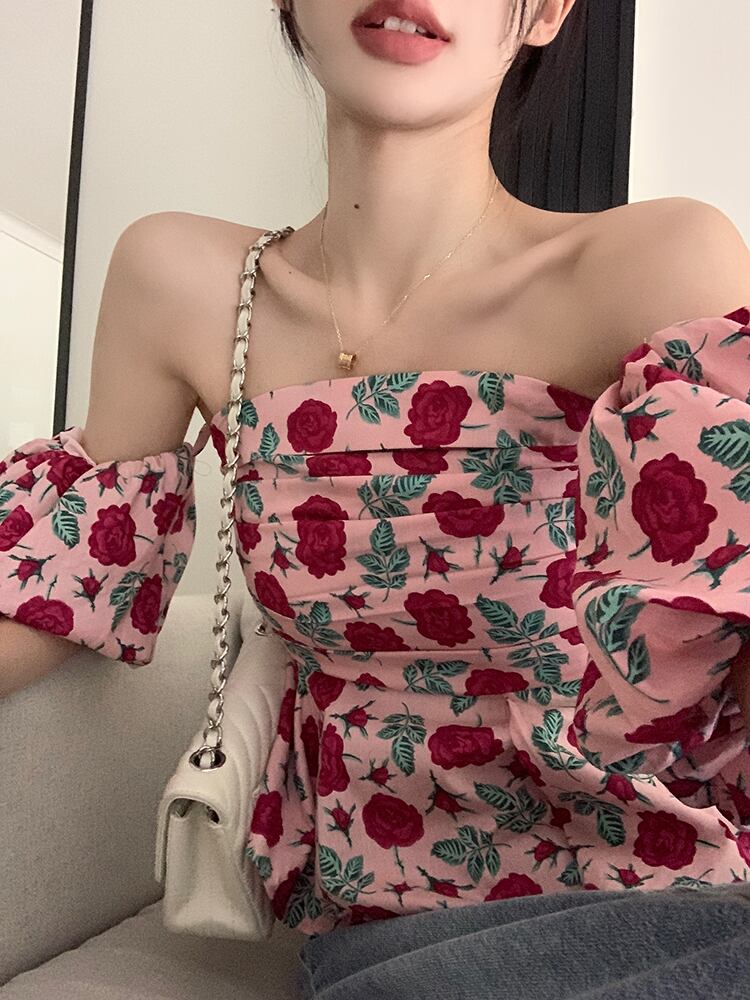 フローラルトップス サマープリーツスリムショートスリーブシャツ 夏物 花柄 10/5 秋冬 オータム ウインター ナチュラル mi4688596107189