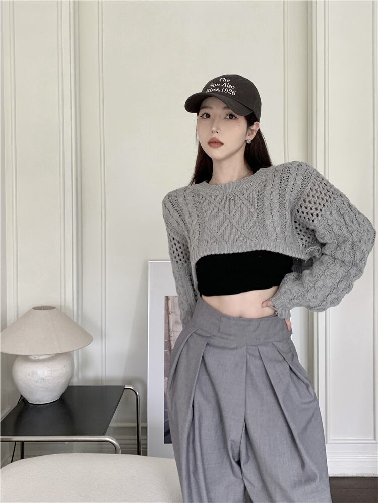 スタイルショートプルオーバー セーター オータムルーズニットトップス ロング 秋物 10/5 秋冬 オータム ウインター ナチュラル mi4612019432713