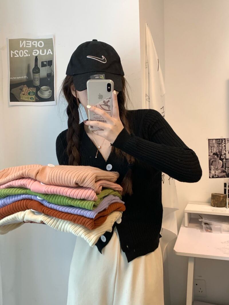 Vネックショートニットセーター ジャケット オータムスリムフィットカーディガントップス ロング 秋物 10/5 秋冬 オータム ウインター ナチュラル mi4684245637952