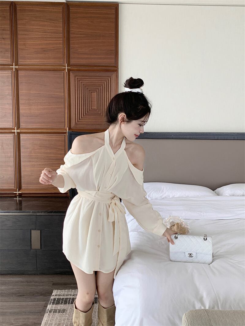 シャツ ドレス オータムウェスト薄手ショートスカート ロング 秋物 ピュア 10/5 秋冬 オータム ウインター ナチュラル mi4657741595388
