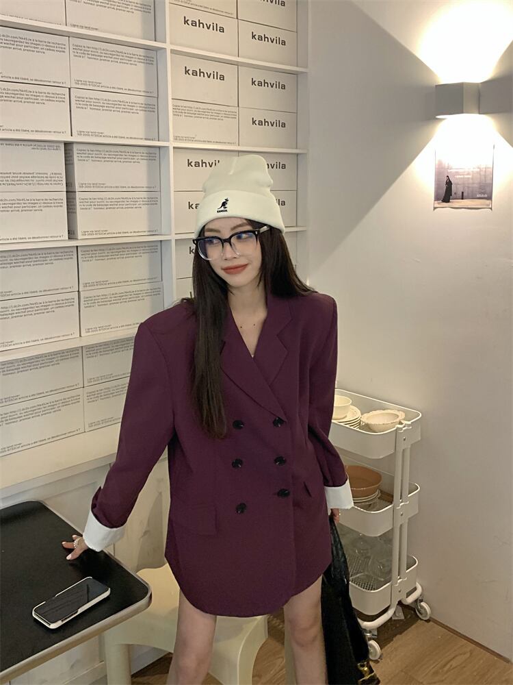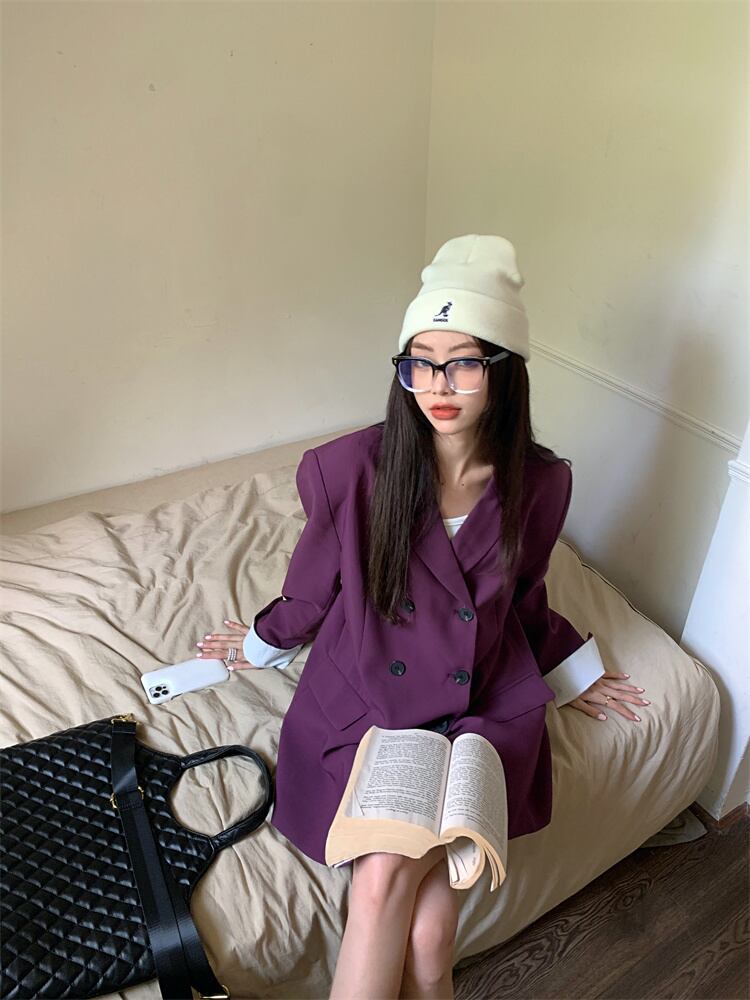 スタンダードジャケット オータムルーズカジュアルトップス レトロ 秋物 パープル 10/5 秋冬 オータム ウインター ナチュラル mi4619974437958