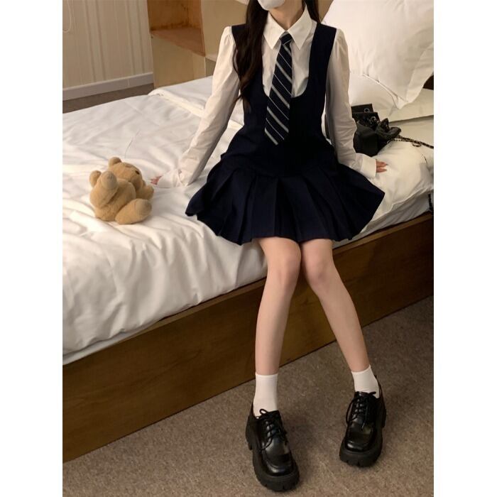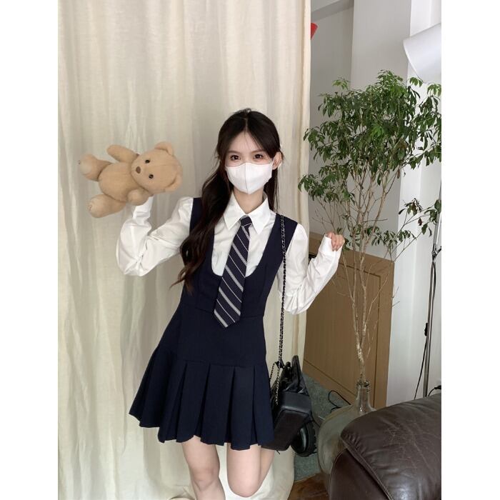 色:白いシャツ+ネクタイ,ネイビードレス