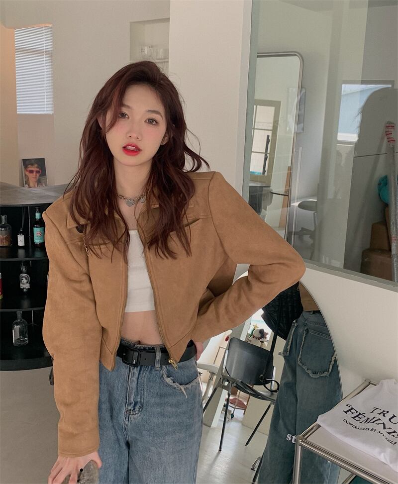 ショートカラージャケット オータムルーズ薄手トップス ロング 秋物 10/5 秋冬 オータム ウインター ナチュラル mi4613945133875