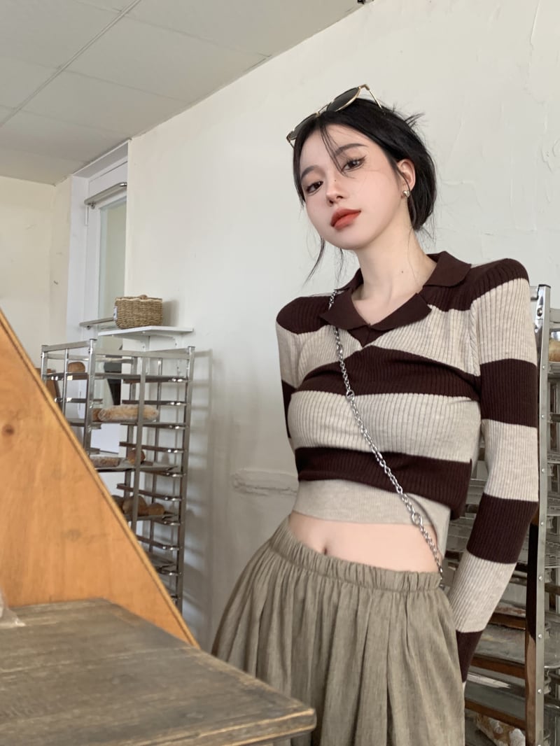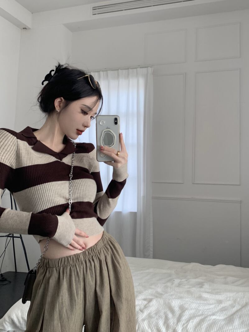 スタンダードスリムストライプセーター オータム薄手トップス ロング レトロ 秋物 10/5 秋冬 オータム ウインター ナチュラル mi4622580594283