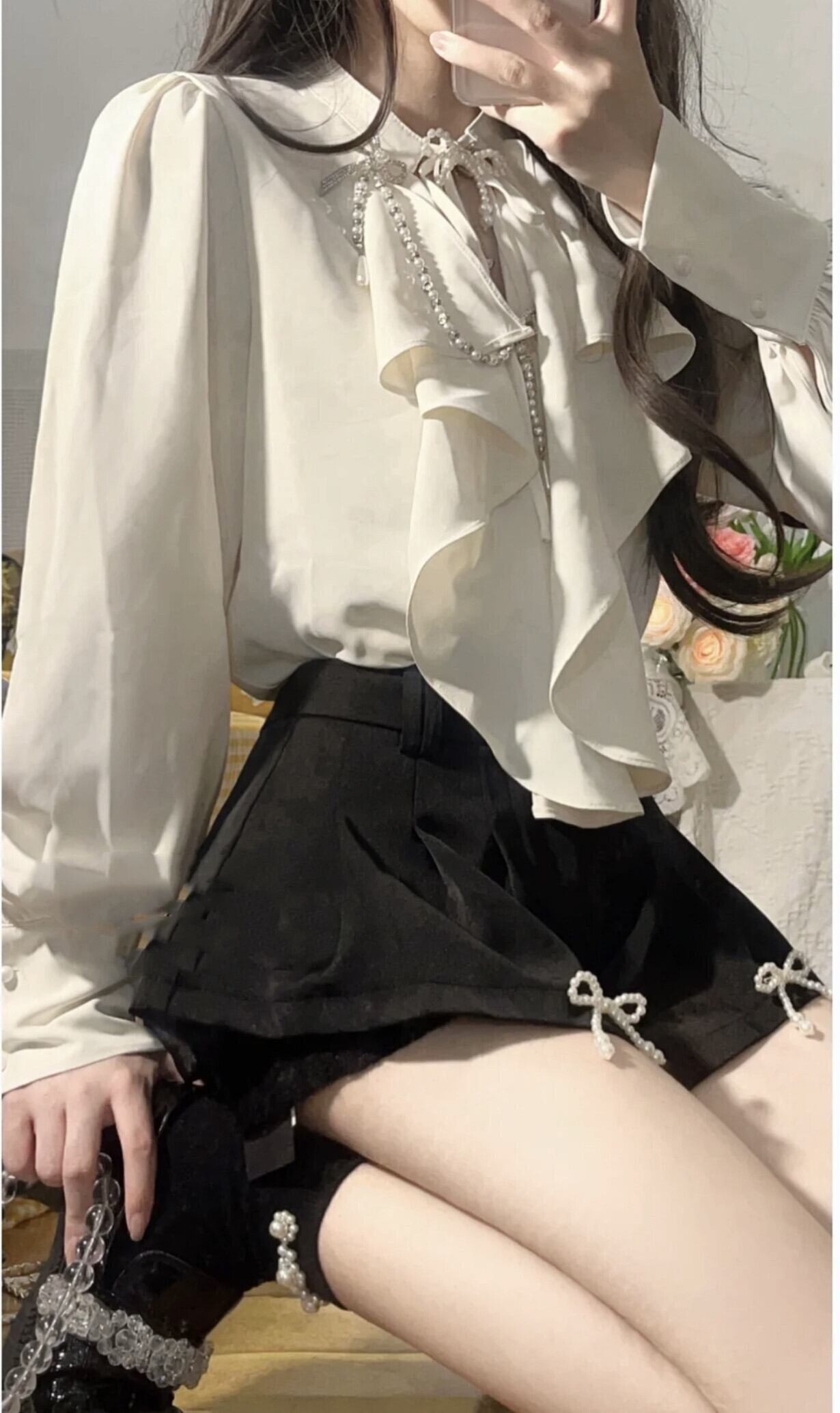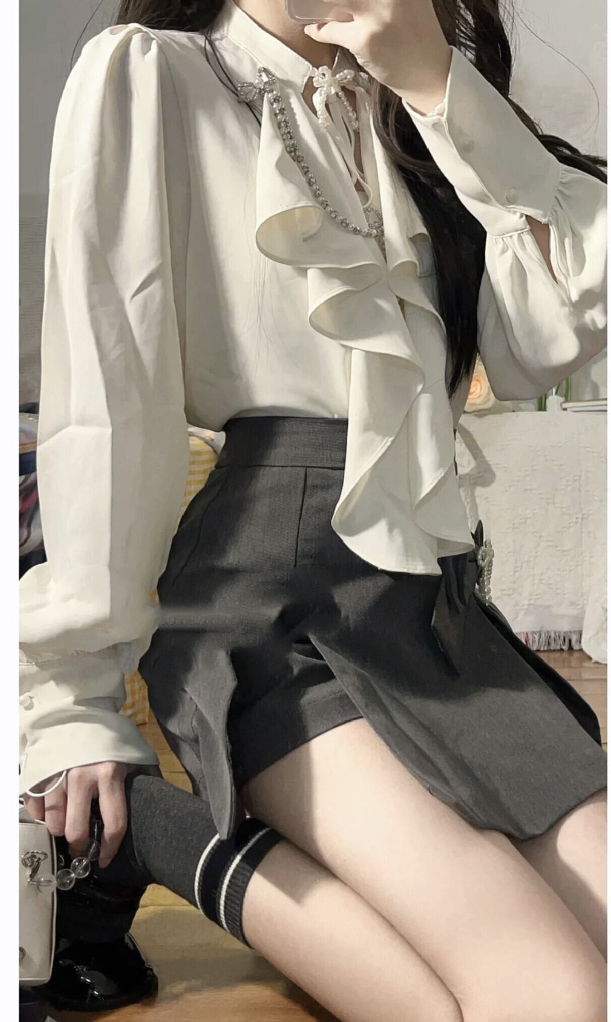 シャツ オータム薄手トップス ロング 大人ガーリー スウィート キュート カジュアル 秋物 10/5 秋冬 オータム ウインター ナチュラル mi4625675705957