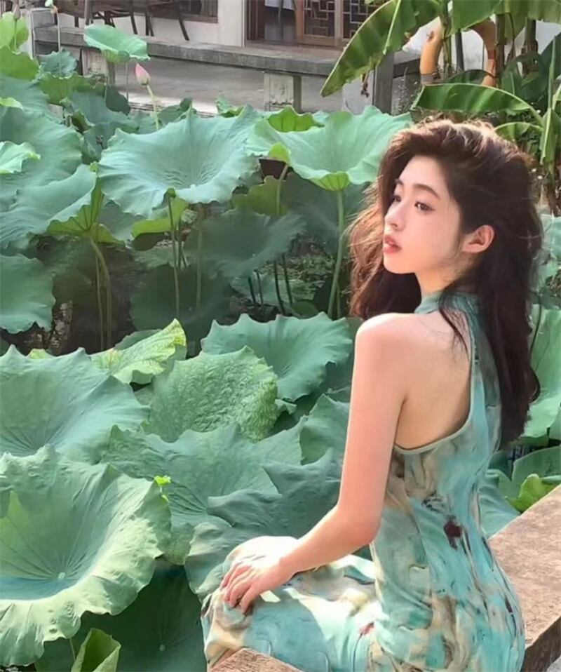 スタンダードプリント柄スタンドカラーカラーシフォンドレス サマースリットスカート レトロ 夏物 10/5 秋冬 オータム ウインター ナチュラル mi4687291086133