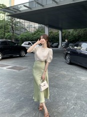 色:シャンパントップ,抹茶アイスクリームスカート