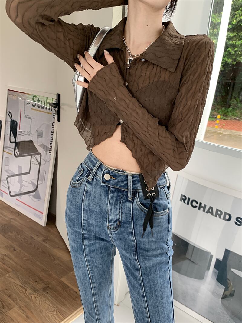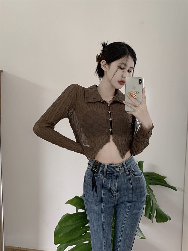 スタンダードシャツ オータムカラーショートカーディガントップス ロング レトロ 秋物 10/5 秋冬 オータム ウインター ナチュラル mi4664775172556