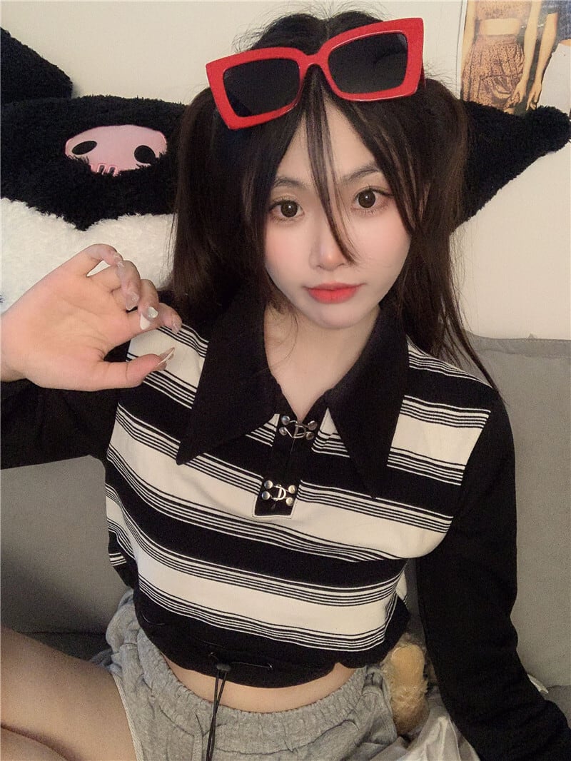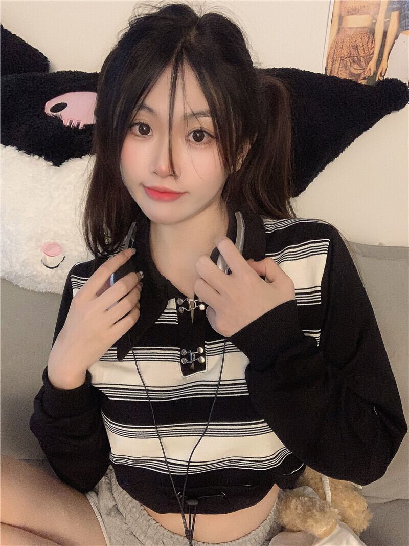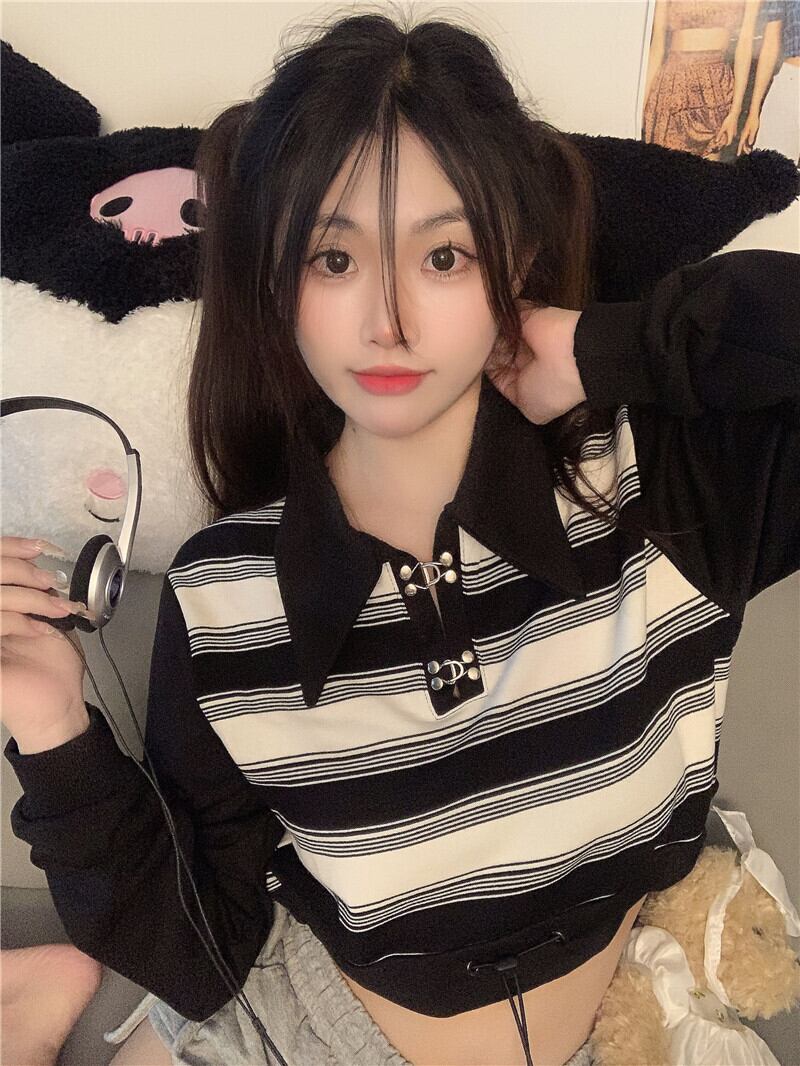 ストライプカラーショートセーター オータムルーズギャザートップス ロング 大人ガーリー スウィート キュート カジュアル 秋物 10/5 秋冬 オータム ウインター ナチュラル mi4620108349056