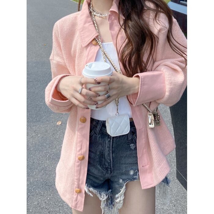 カラーニットカーディガンオータムスタイルルーズ ピンク 秋物 10/5 秋冬 オータム ウインター ナチュラル mi4626378787361
