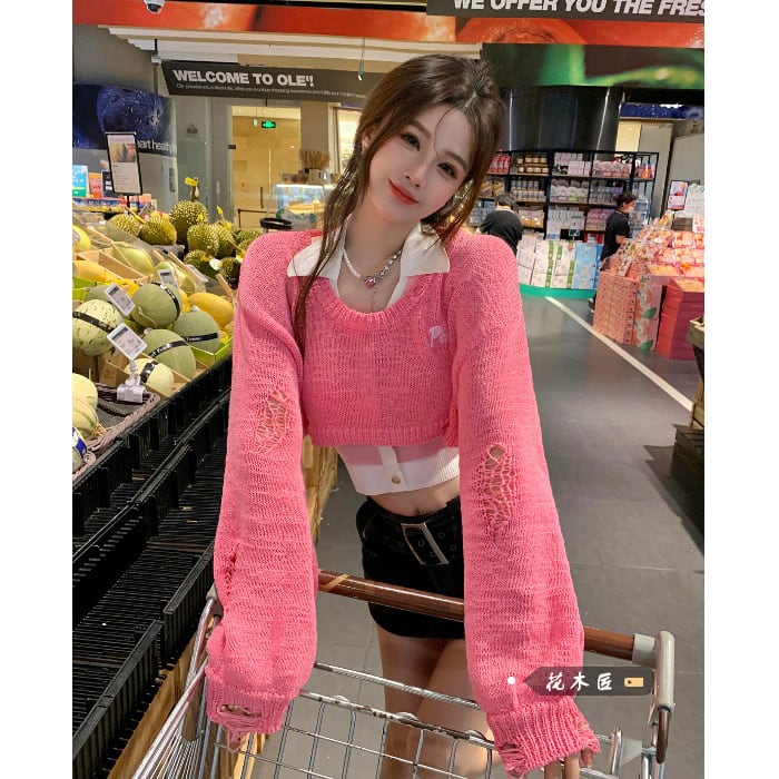 ショートニットセーター オータムルーズトップス ピンク 大人ガーリー スウィート キュート カジュアル 秋物 10/5 秋冬 オータム ウインター ナチュラル mi4641375582995