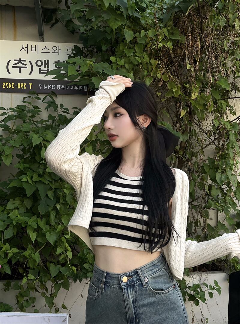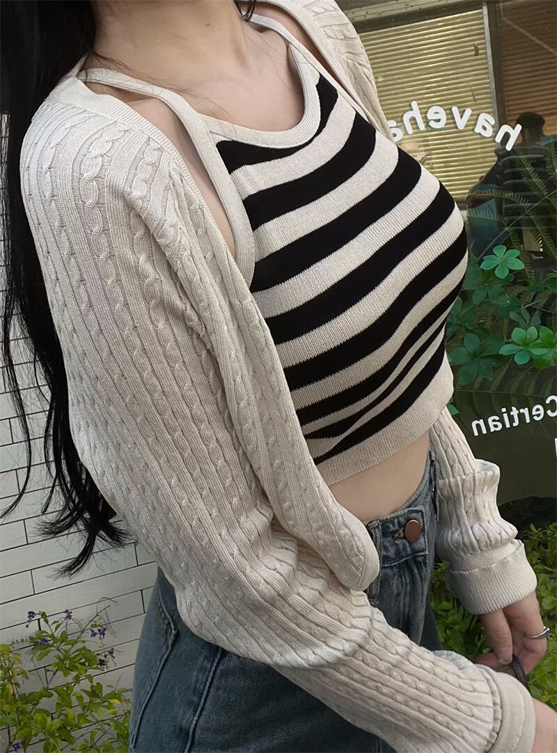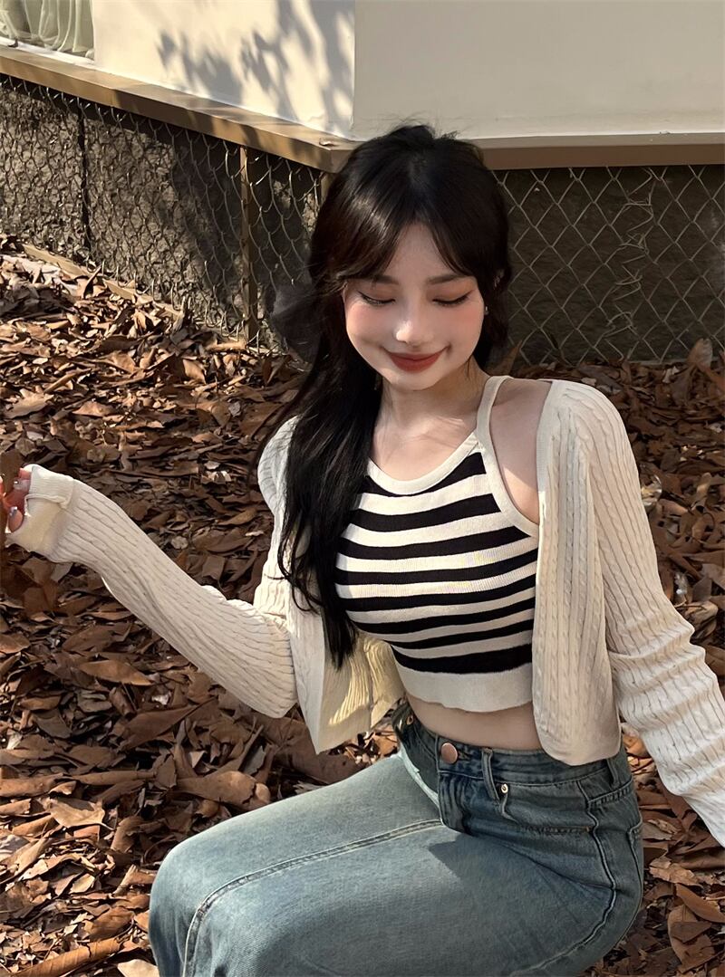 オータムストライプニットセーター カーディガン 大人ガーリー スウィート キュート カジュアル 秋物 10/5 秋冬 オータム ウインター ナチュラル mi4614970679700