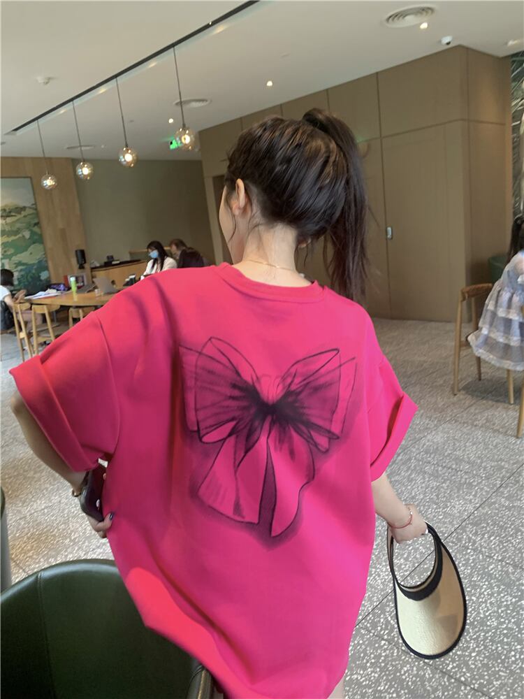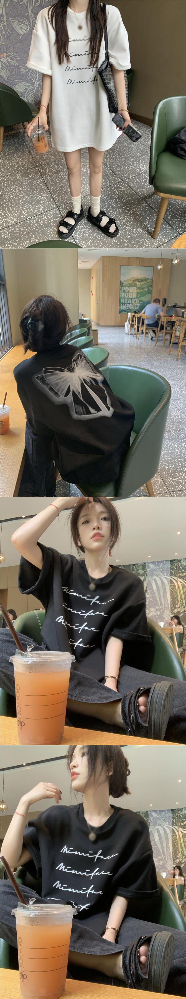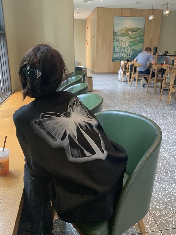 Butterflyデザイン プリント柄Tシャツ サマールーズトップス 夏物 10/5 秋冬 オータム ウインター ナチュラル mi4611938340528