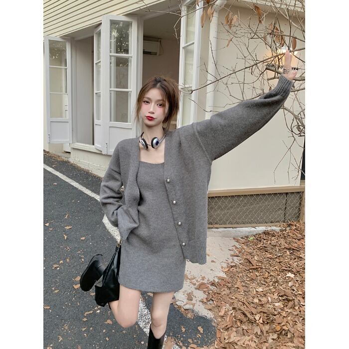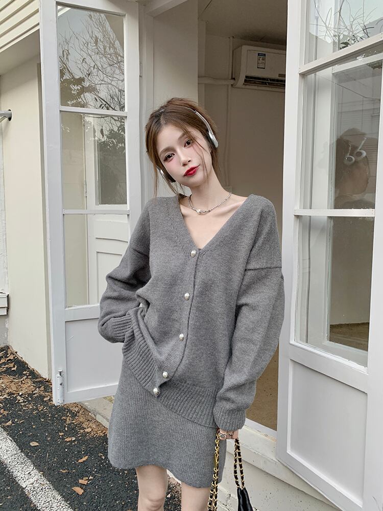 カジュアルニットオータムルーズカーディガンジャケット スリムカラースカート セット 秋物 スクウェア 10/5 秋冬 オータム ウインター ナチュラル mi4675448585969