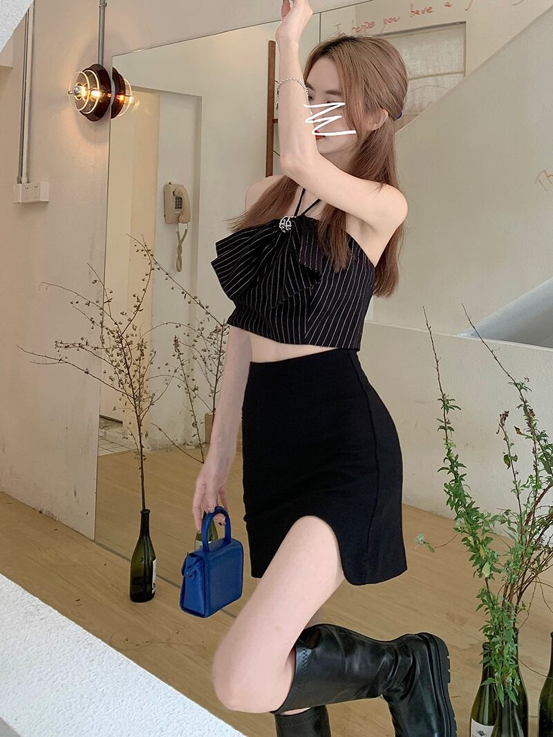 ブラックスカート サマーハイウェストウェストスリムAラインショート 夏物 10/5 秋冬 オータム ウインター ナチュラル mi4667016153876