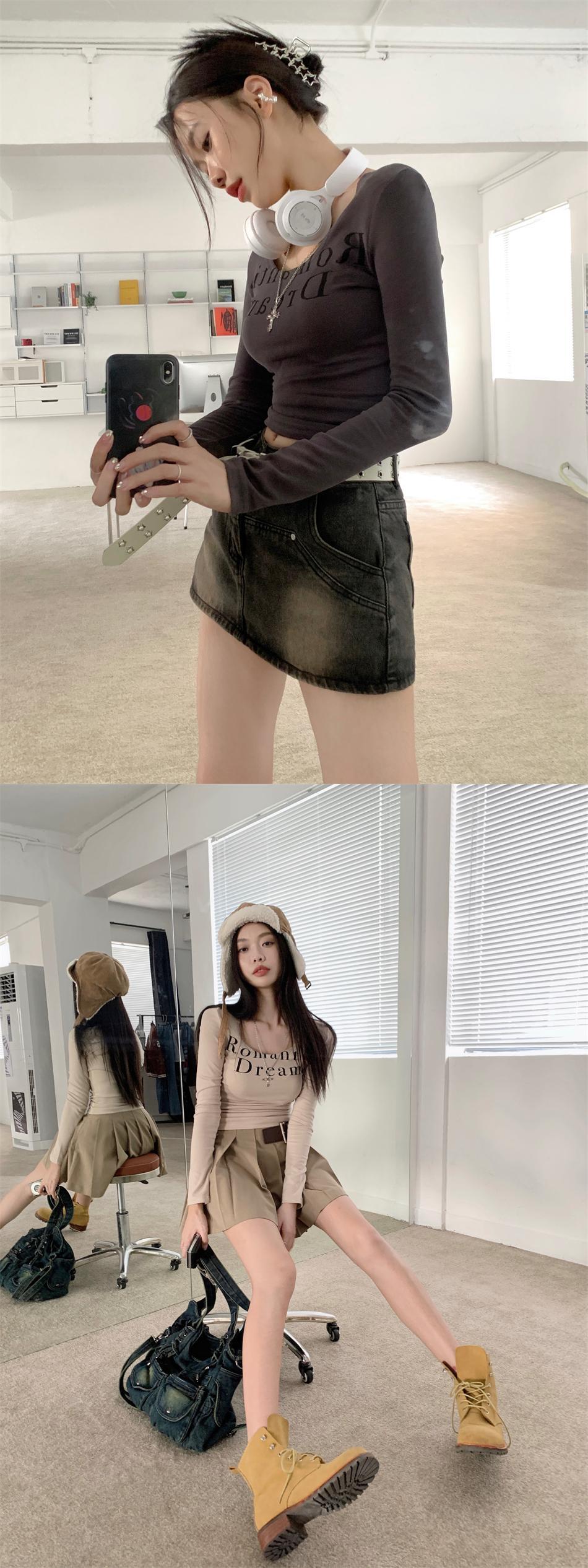 プリント長袖スリーブTシャツ オータムスリムフィットトップス ロング 秋物 10/5 秋冬 オータム ウインター ナチュラル mi468697842246