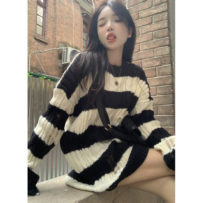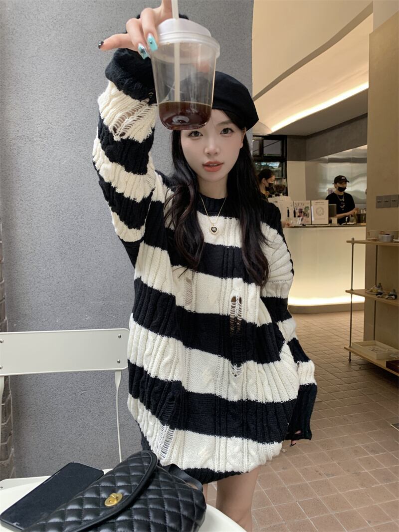 ルーズカラーストライプセーター コート オータムスリムプルオーバー 秋物 10/5 秋冬 オータム ウインター ナチュラル mi4627047764300