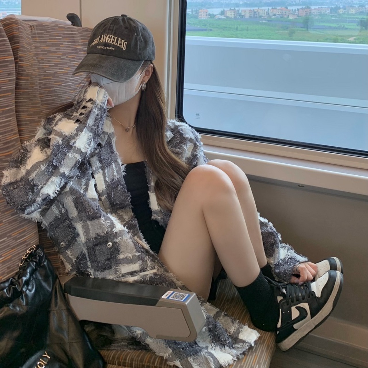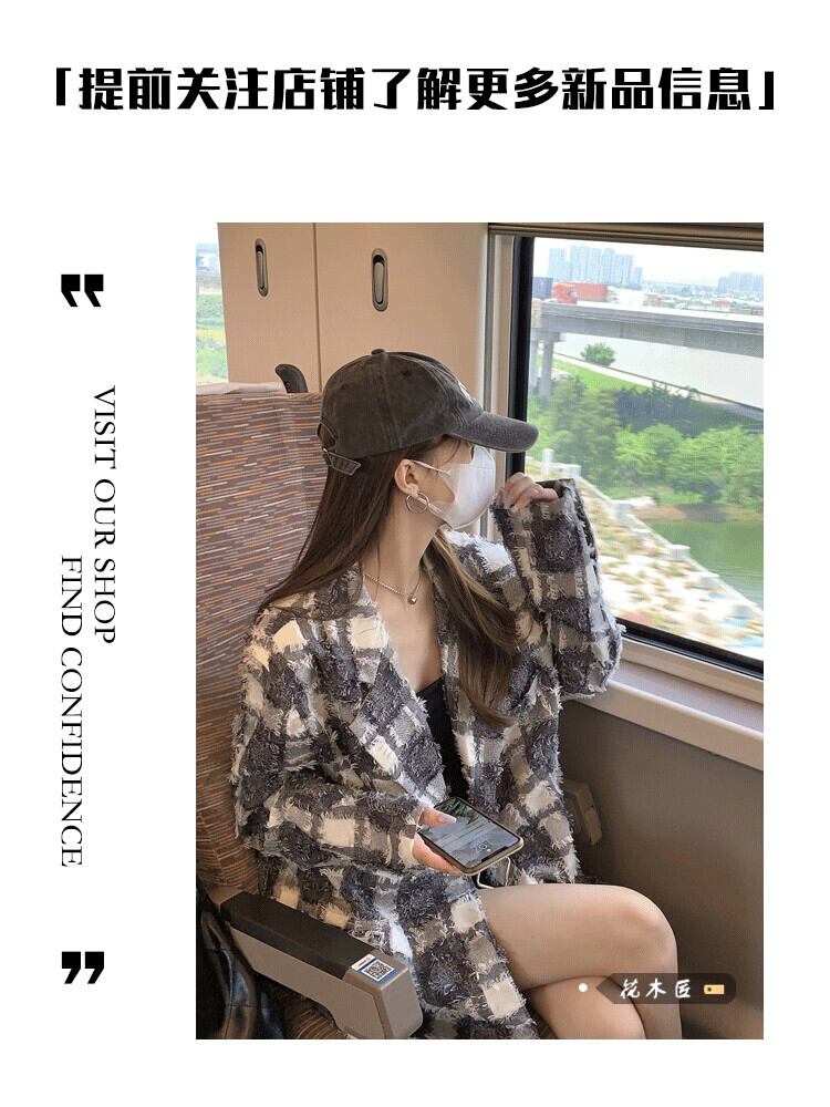 カラー格子柄ジャケット オータムスタンダードカジュアルカーディガントップス レトロ 秋物 10/5 秋冬 オータム ウインター ナチュラル mi4679601352220