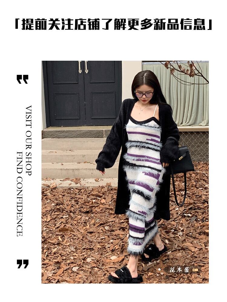 ストライプドレス オータムニットスカート 秋物 10/5 秋冬 オータム ウインター ナチュラル mi4624793827181