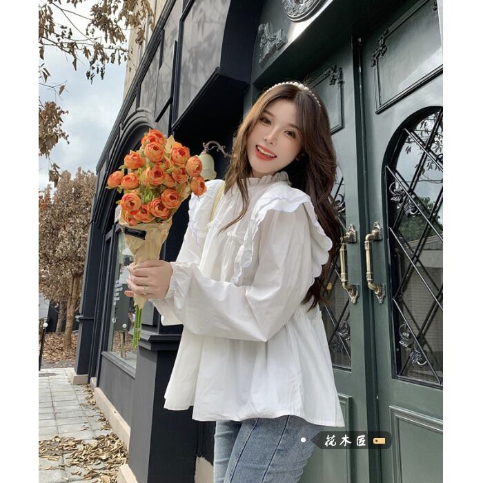 ホワイトシャツ オータムルーズ薄手トップス ロング 大人ガーリー スウィート キュート カジュアル 秋物 10/5 秋冬 オータム ウインター ナチュラル mi4652619167182