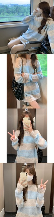 カラーストライプセーター オータムルーズ薄手ニット 秋物 10/5 秋冬 オータム ウインター ナチュラル mi4674914879328
