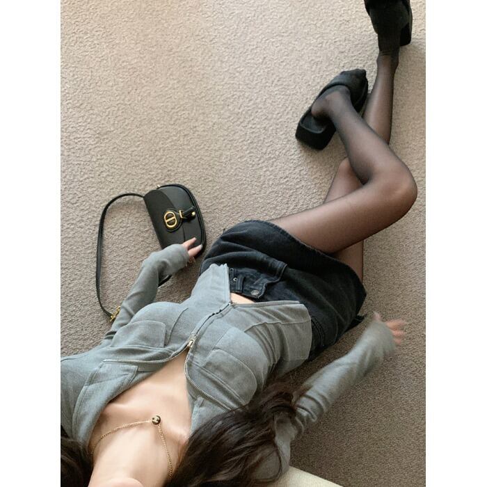 スタイルカラーダブルジッパージャケット オータムスリムカーディガンショートトップス 秋物 10/5 秋冬 オータム ウインター ナチュラル mi4621470875515