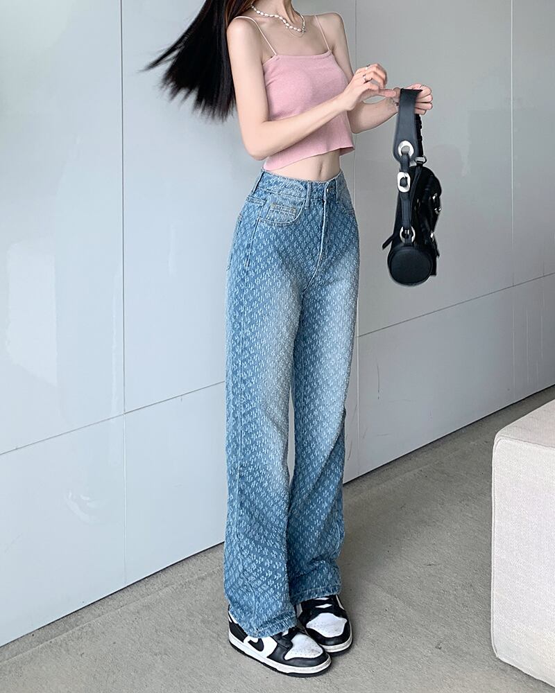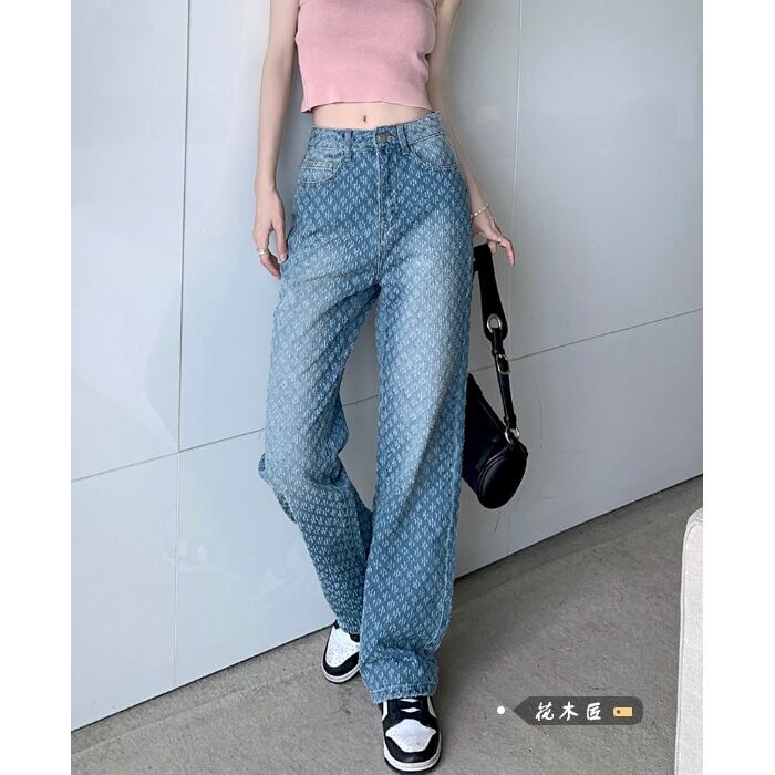 ジャカードハイウェストウェストジーンズ オータムスリムパンツ 秋物 10/5 秋冬 オータム ウインター ナチュラル mi4612518307887