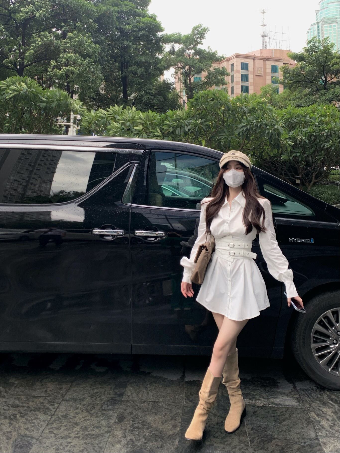 ホワイトシャツ ドレス オータムウェストAラインスカート 秋物 10/5 秋冬 オータム ウインター ナチュラル mi4639330574005