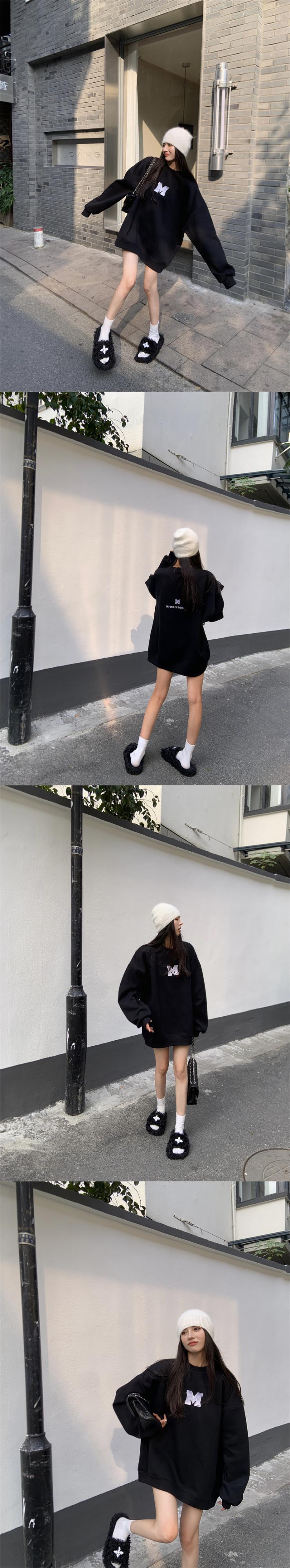 スタンダードプリント柄ブラックセーター オータムルーズトップス レトロ 秋物 10/5 秋冬 オータム ウインター ナチュラル mi4624270724884