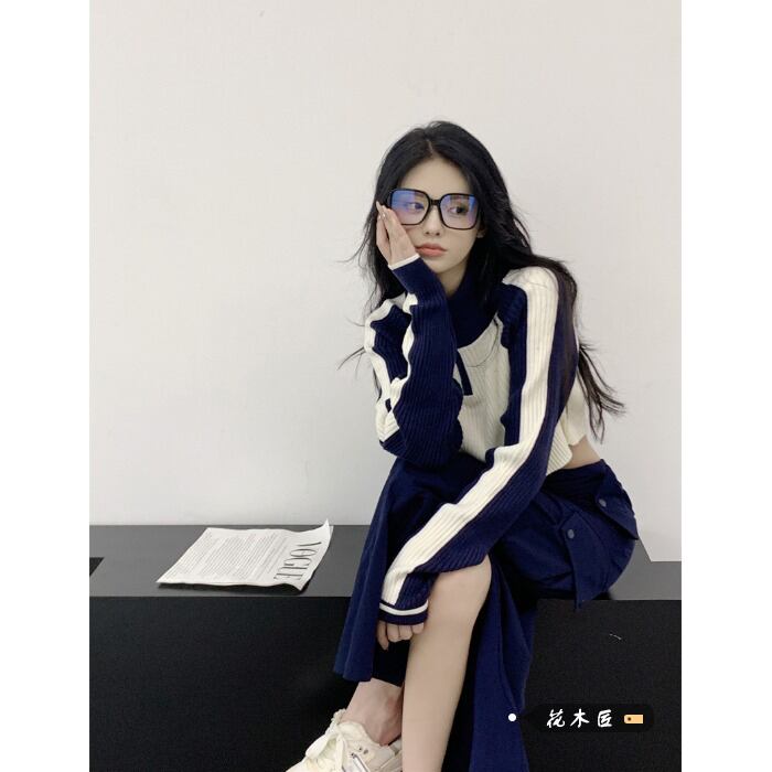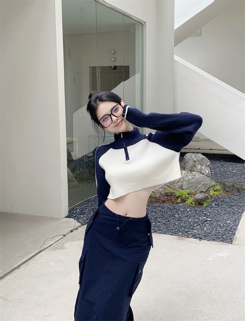 スタンダードカラーニットセーター オータムショートプルオーバー トップス ロング レトロ 秋物 10/5 秋冬 オータム ウインター ナチュラル mi4680690941201