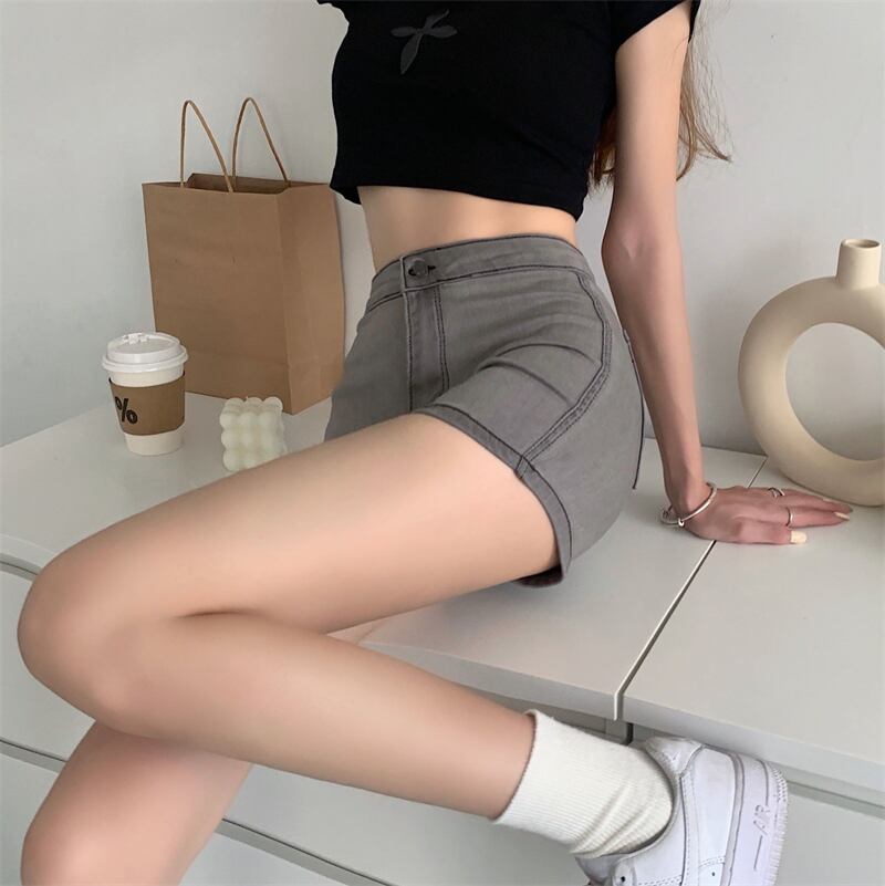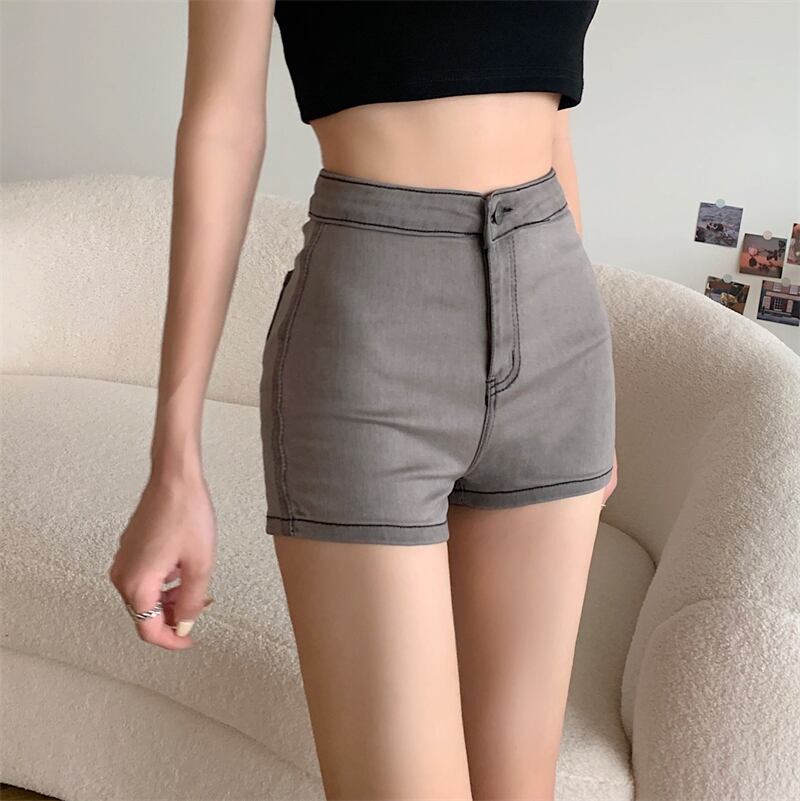 グレーショーツ サマーハイウェストウェスト薄手ストレッチスリムパンツ エラスティック 伸縮 夏物 ブルマー 10/5 秋冬 オータム ウインター ナチュラル mi4675766009357