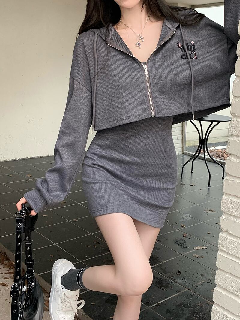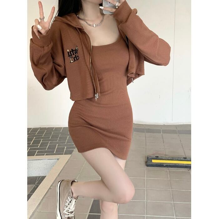 色:グレーコートシングルピース,ブラウンコートシングルピース,グレーストラップドレス,茶色のストラップドレス