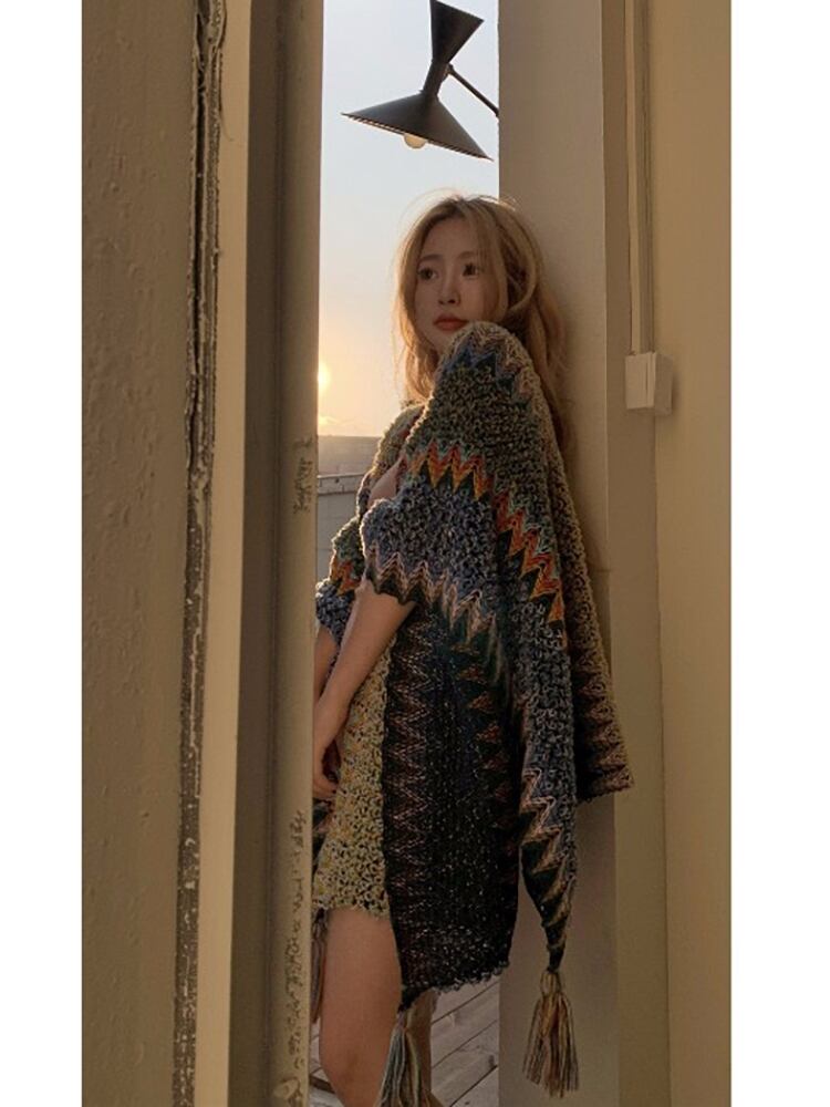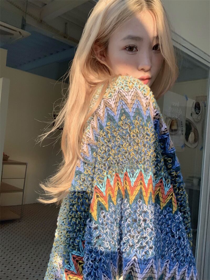 エスニックスタイルカラーストライプニットオータムロング 秋物 10/5 秋冬 オータム ウインター ナチュラル mi467640944640