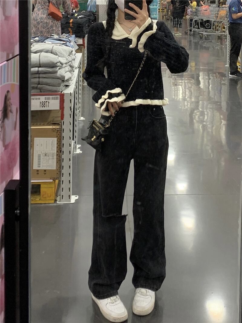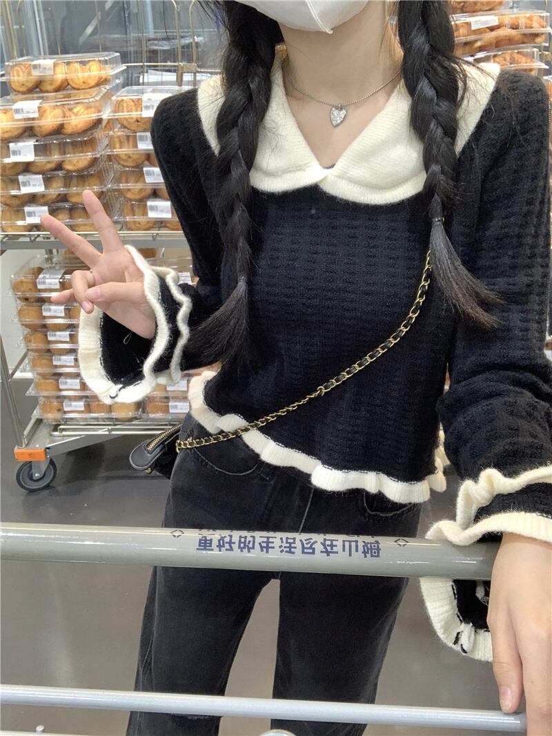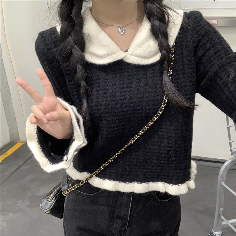カラーセーター オータム薄手ショートニットトップス 秋物 10/5 秋冬 オータム ウインター ナチュラル mi4624676695791