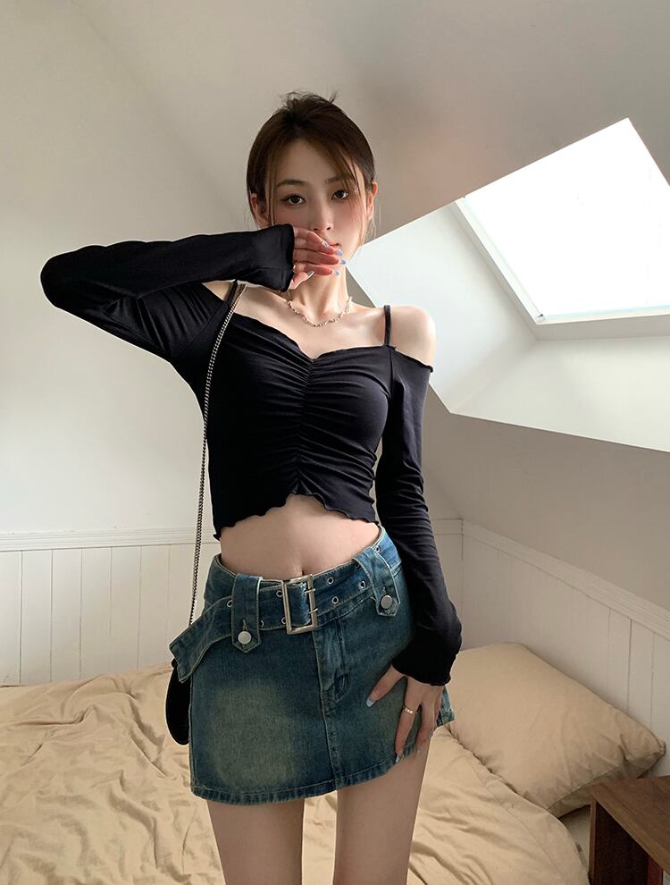 Tシャツ オータムプリーツスリムショートトップス ロング 秋物 ピュア 10/5 秋冬 オータム ウインター ナチュラル mi4647678260482