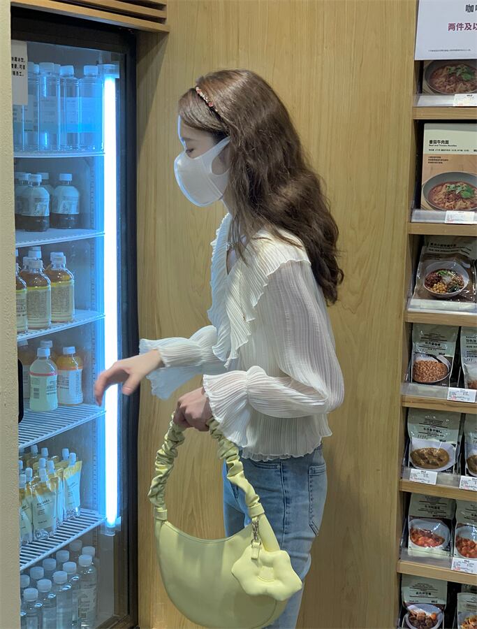 Vネックシャツ オータム薄手ショートトップス 秋物 10/5 秋冬 オータム ウインター ナチュラル mi4696479318663