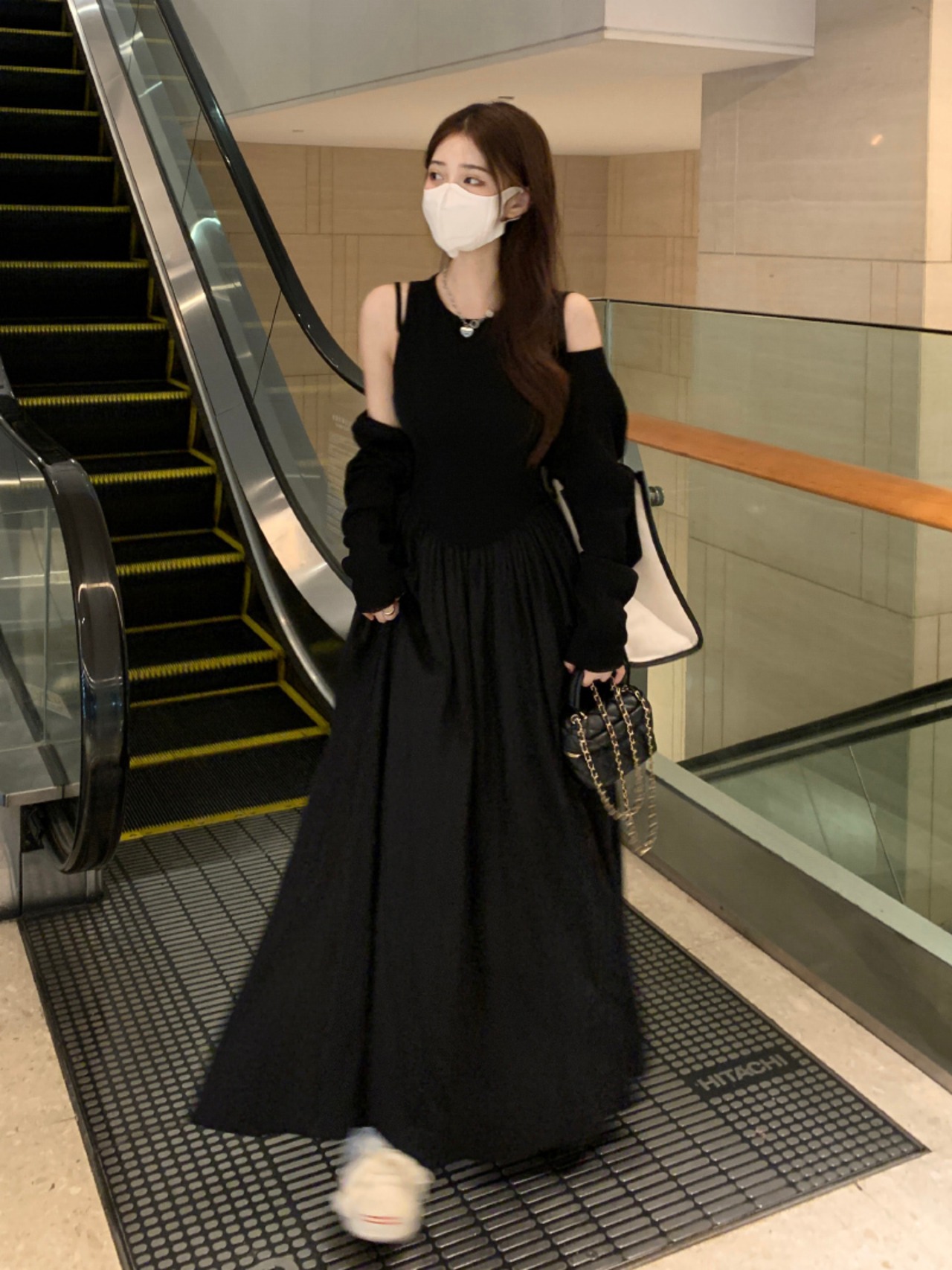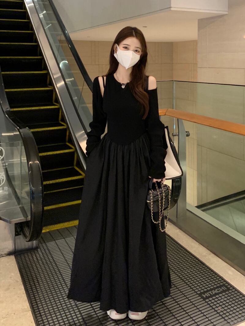 カジュアルブラックドレス サマーウェストスリムスカート 夏物 10/5 秋冬 オータム ウインター ナチュラル mi4680711697064