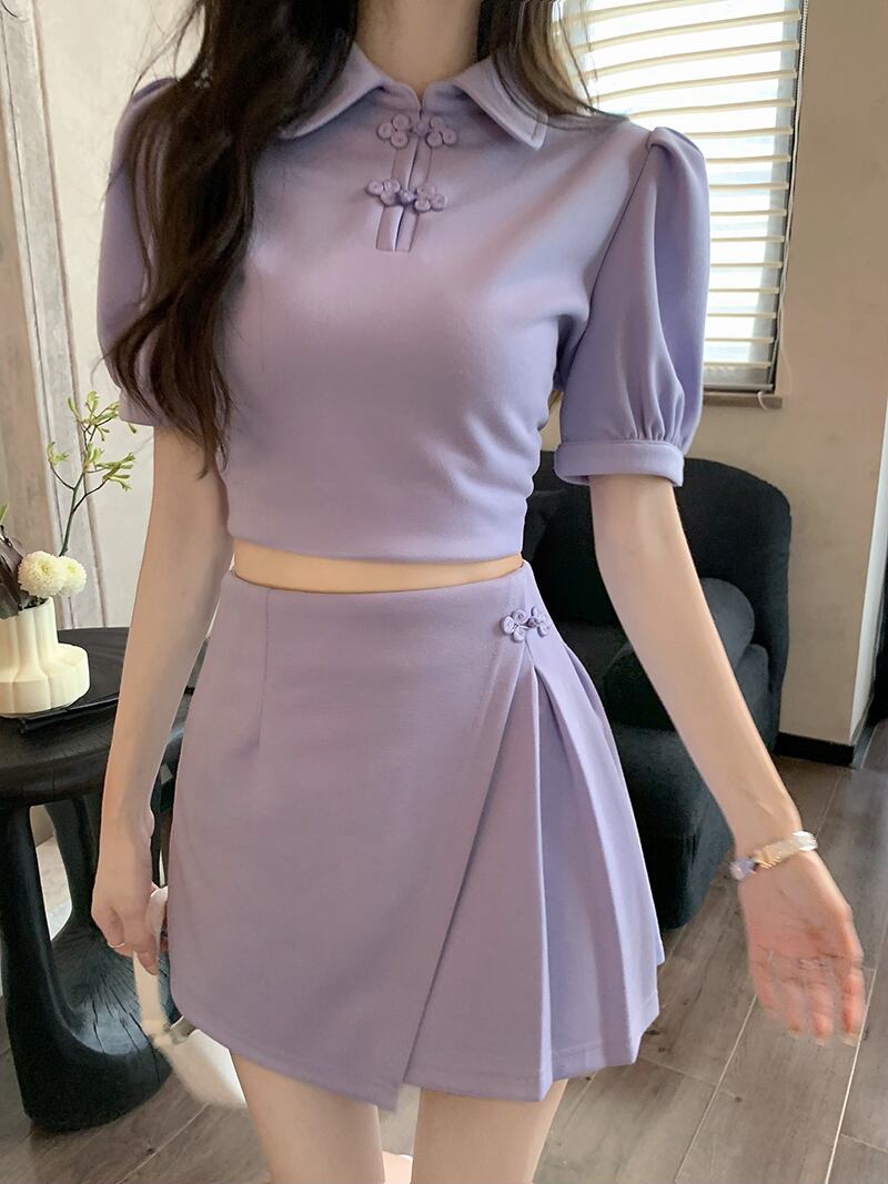 スタイルサマーボタントップス プリーツスカート セット 夏物 10/5 秋冬 オータム ウインター ナチュラル mi4649550736658