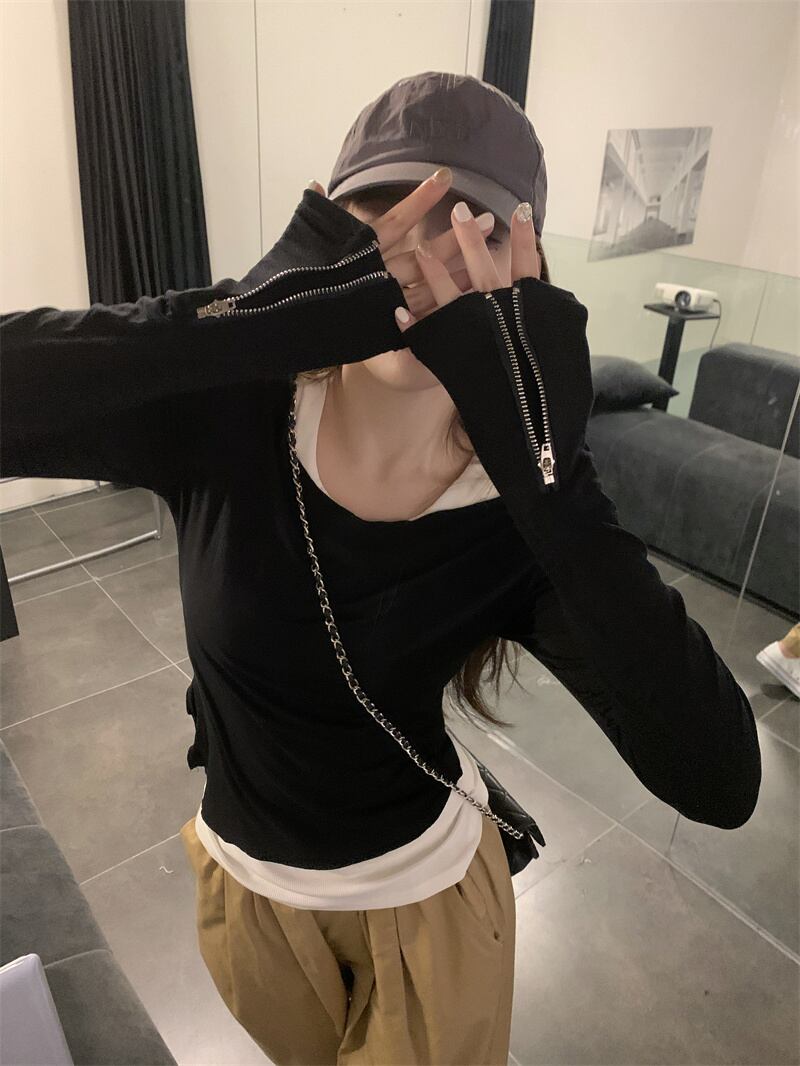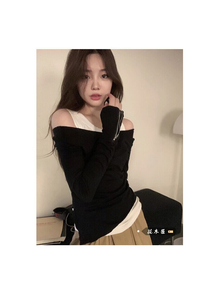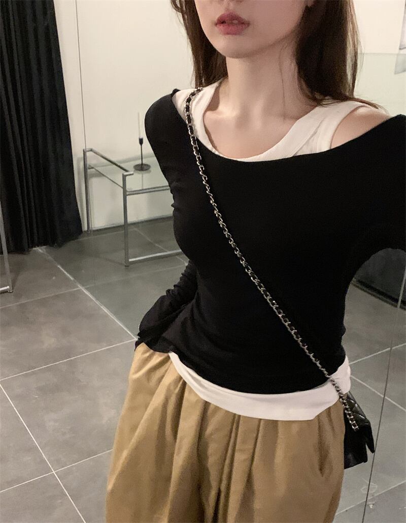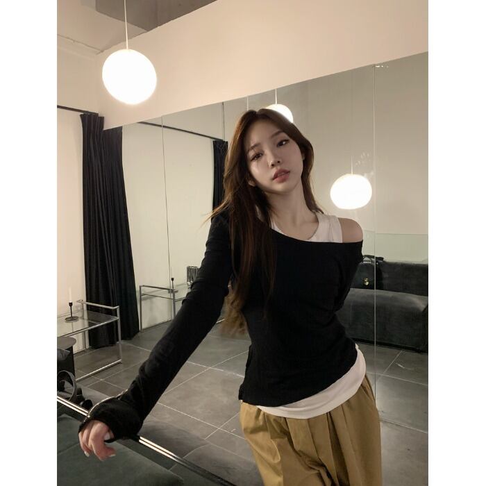 色:白いベストワンピース,ブラックロングスリーブワンピース