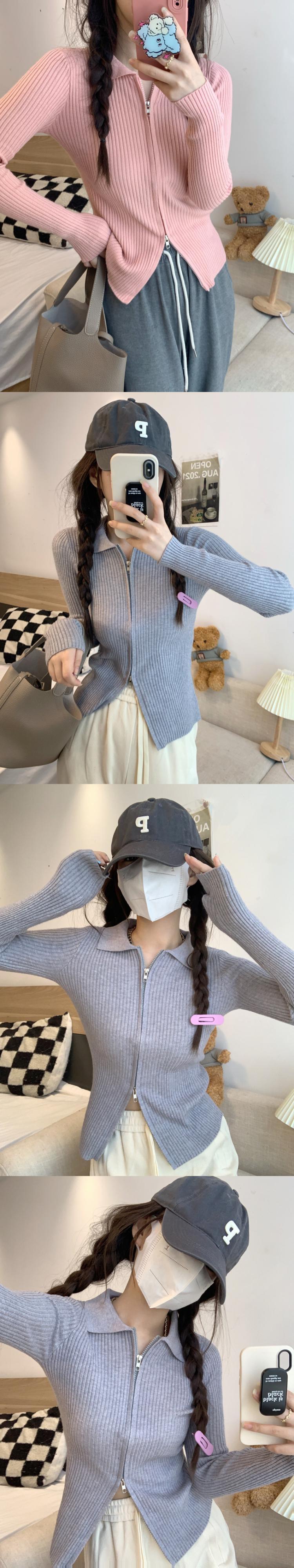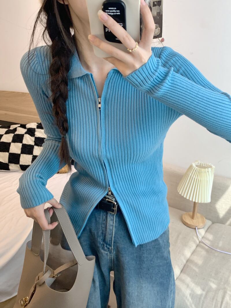 ダブルジッパーグリーンニットカーディガンオータムショートトップス ロング 秋物 10/5 秋冬 オータム ウインター ナチュラル mi4618743195179