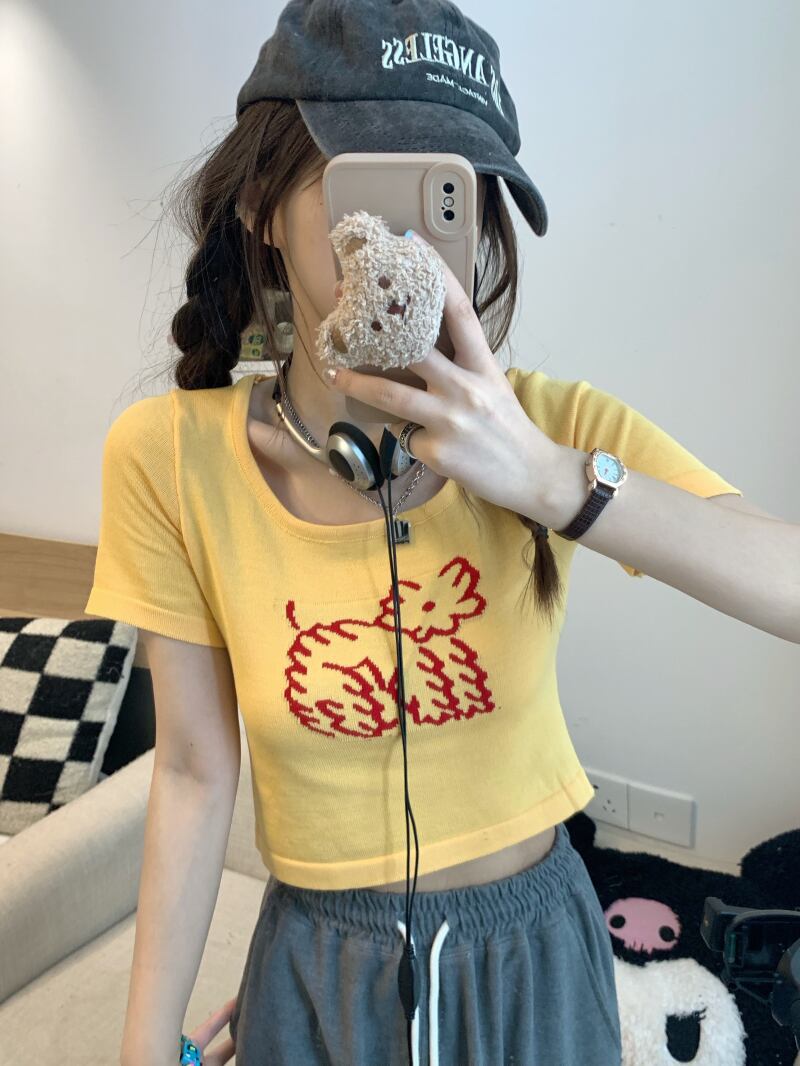 刺繍ニットTシャツ サマートップス 夏物 10/5 秋冬 オータム ウインター ナチュラル mi464024907510