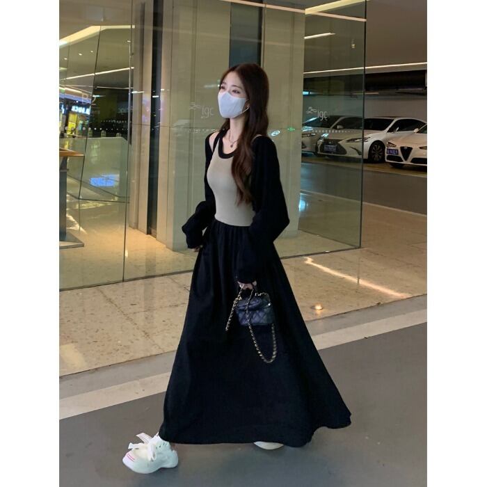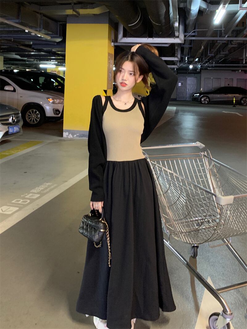 カラーノースリーブドレス オータムスリムAラインスカート 秋物 10/5 秋冬 オータム ウインター ナチュラル mi4699513992577