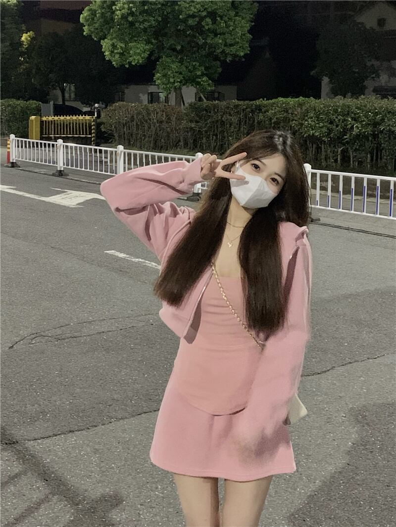 オータム長袖スリーブフードセーター ショートスカート セット ロング 大人ガーリー スウィート キュート カジュアル 秋物 10/5 秋冬 オータム ウインター ナチュラル mi4672157908915